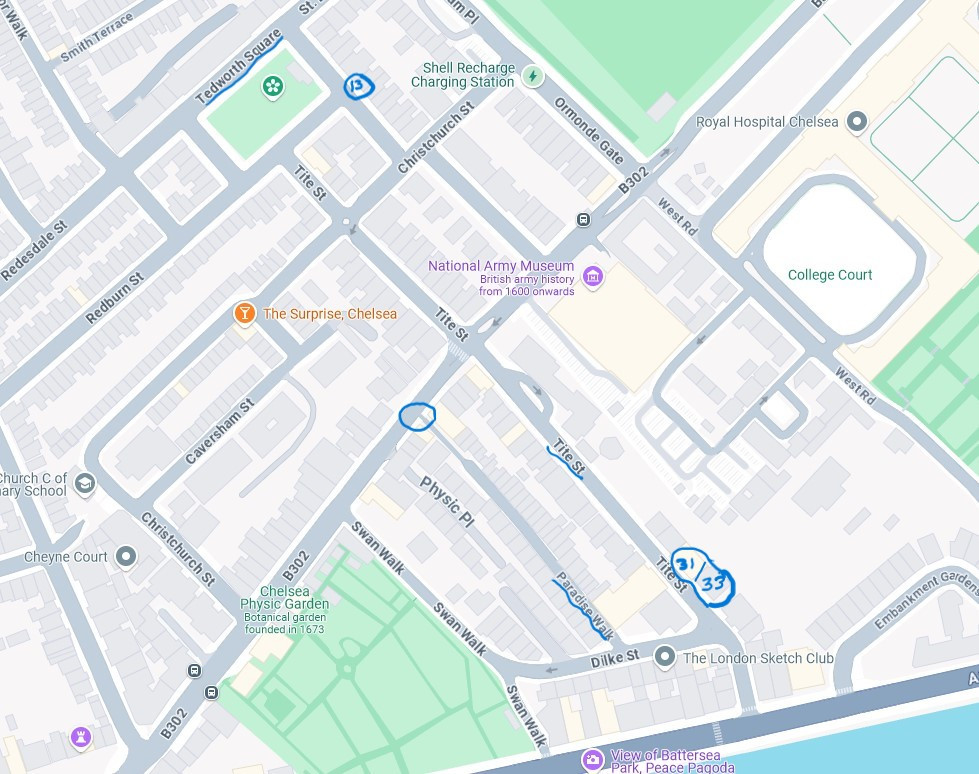 13 Tite Street (later changed to 33 Tite Street) was eventually expanded into 31 Tite Street in 1900, after some architect legal wranglings and he combined both by cutting a hole in the wall and he would use 31 as his residence and keep 33 as his studio.